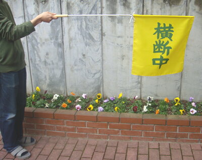 素材 旗:天竺綿/棒:ラワン サイズ:旗35×40cm 棒60cm 指導旗 P2101(横断中・ツイル生地) 450×500mm(伸縮棒740〜1130mm) 1本入 旗はツイルで雨に濡れても重くならない素材です。