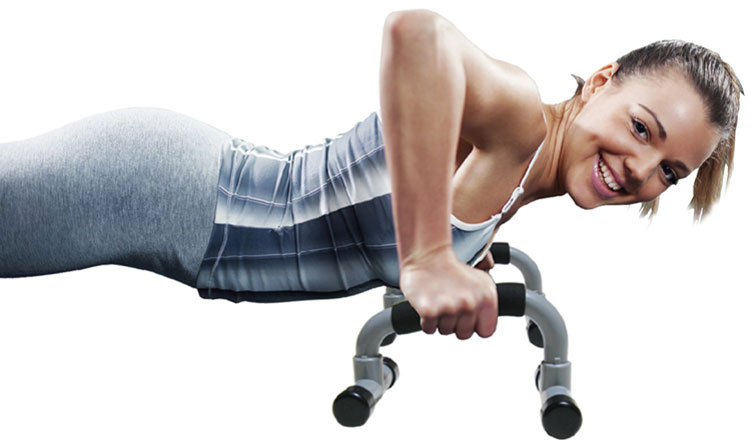 プッシュアップバーを使うと、床で腕立て伏せをするより 可動領域が広くなるので、胸筋もより効果的に鍛えることが出来ます。