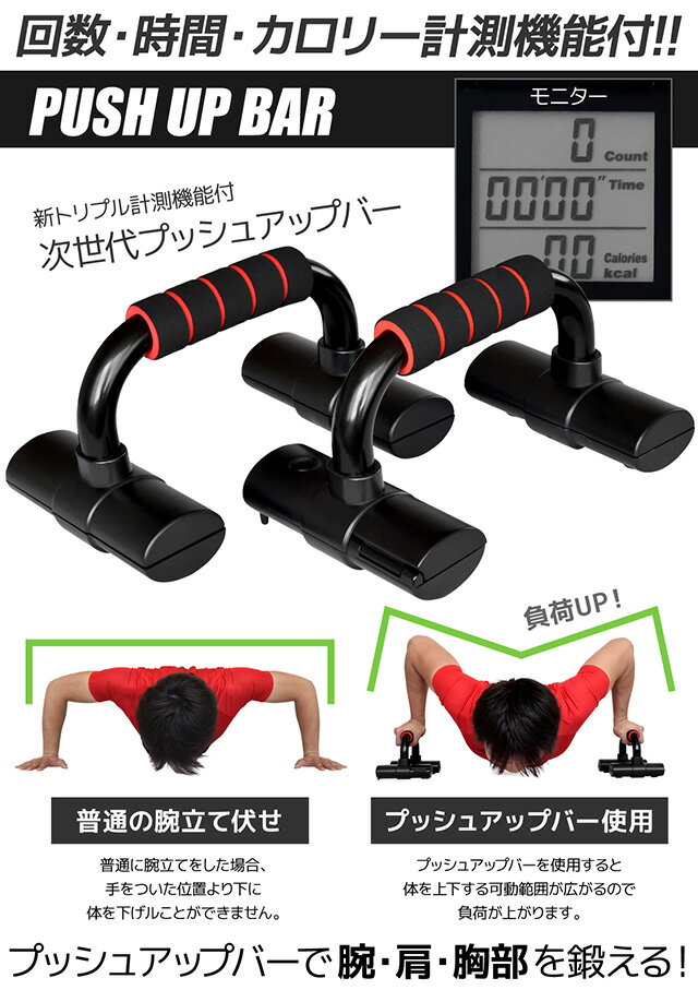 ◆期間限定11/29迄1820円OFFクーポン発行中◆ プッシュアップバー 計測機能付き 腕立て伏せ トレーニング プッシュアップスタンド どこでも簡単 速攻トレーニング 腕立て 持ち運べる 回数 時間 カロリー 計測 すべり止め スポンジ グリップ