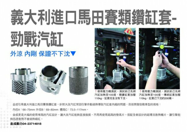 ■商品番号KC-211■JANコードt00032838■商品概要Superconducting Flow Diamond Like Ceramic Cylinder+Forged Piston&0.8mm High Speed Piston Ring-Outside Diameter 78 Body Height 79.5 Neck High 24シリンダーサイズ:73mm■適合車種▼YAMAHACYGNUS X JOG RS 100 RS Z 100 RS Zero 100 ■詳細説明Integrated lengthened cylinder block,avoid externally padded gasket never leak oil0.8mm High Speed Piston Ring - Low Friction CoefficientConvex Top CBR/Forged Piston - Durable temperature and pressure resistanceSuperflux cooling fins - strong cooling oil film is not brokenItalian ceramic coating - high-powered guarantee is not off the cylinder